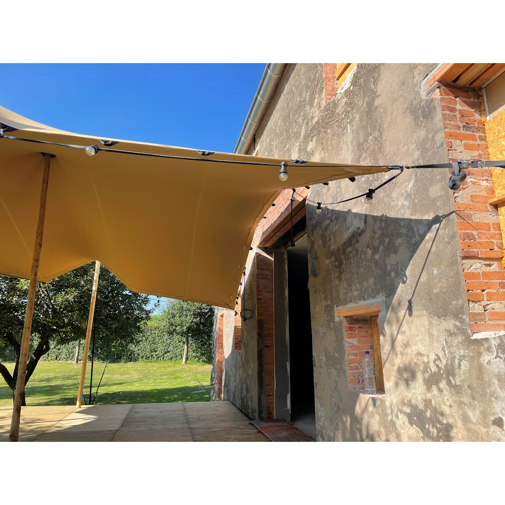 Este un cort foarte versatil/modular, care se poate adapta cu usurinta la nevoile dvs. Corturile se pot folosi solitar sau se pot interconecta intre ele cu ajutorul unui keder (gutter); sau se pot atasa unei perete pentru a acoperi o terasa.